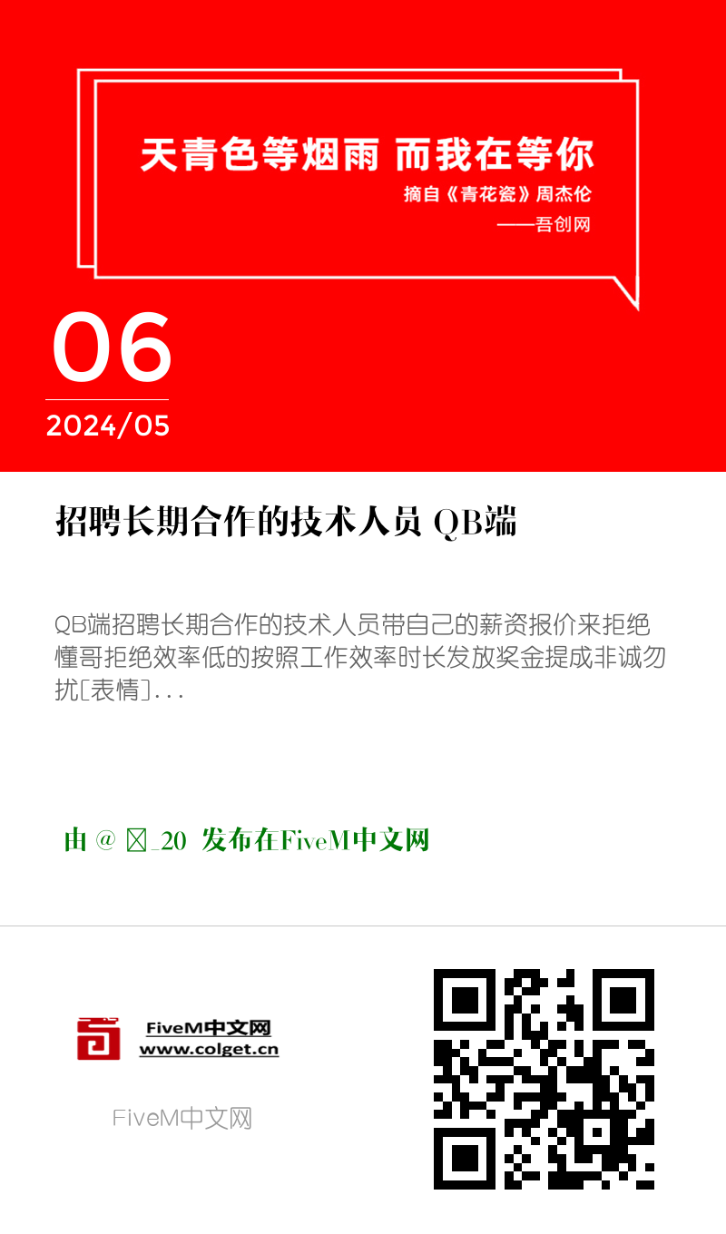 招聘长期合作的技术人员 QB端